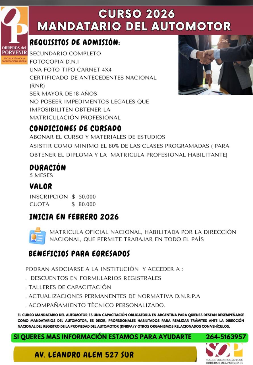 INSCRIPCIONES ABIERTAS PARA EL CURSO DE MANDATARIO 2026