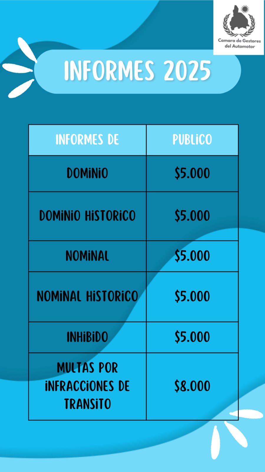PRECIOS DE INFORMES – 2025