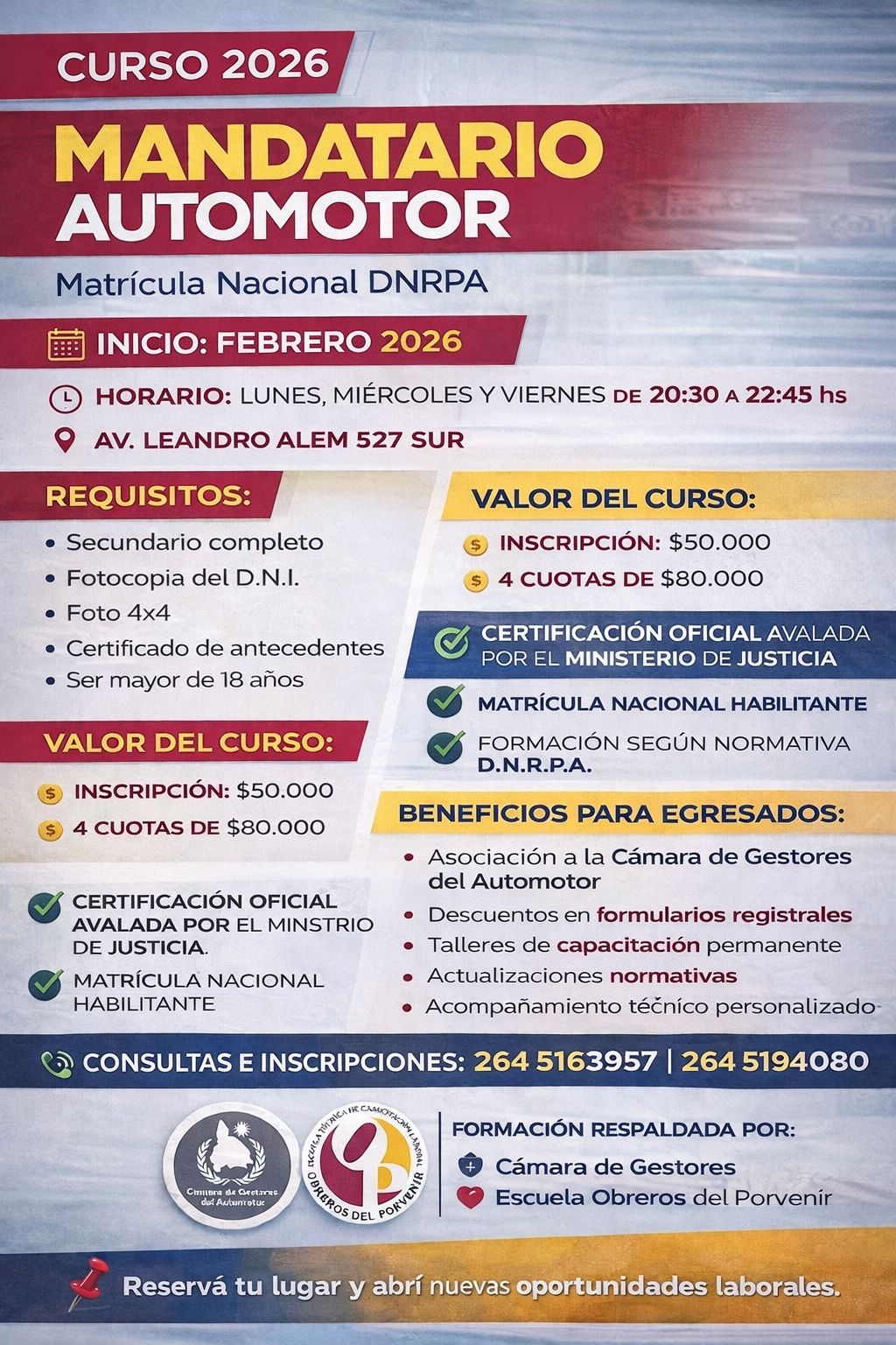 ULTIMOS CUPOS PARA EL CURSO DE MANDATARIO 2026 / Noticias y Novedades / 6 febrero, 2026 COMIENZA EL 23 DE FEBERO DEL 2026, COMUNICATE CON NOSOTROS… TE ESPERAMOS!!!!